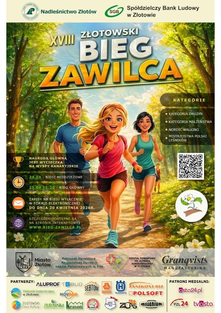 XVIII Złotowski Bieg Zawilca to doskonała okazja, aby połączyć sportowe emocje z kontaktem z naturą i spędzić czas w wyjątkowej, wiosennej atmosferze. Serdecznie zapraszamy wszystkich miłośników aktywności na świeżym powietrzu do udziału w tym niezwykłym wydarzeniu.
